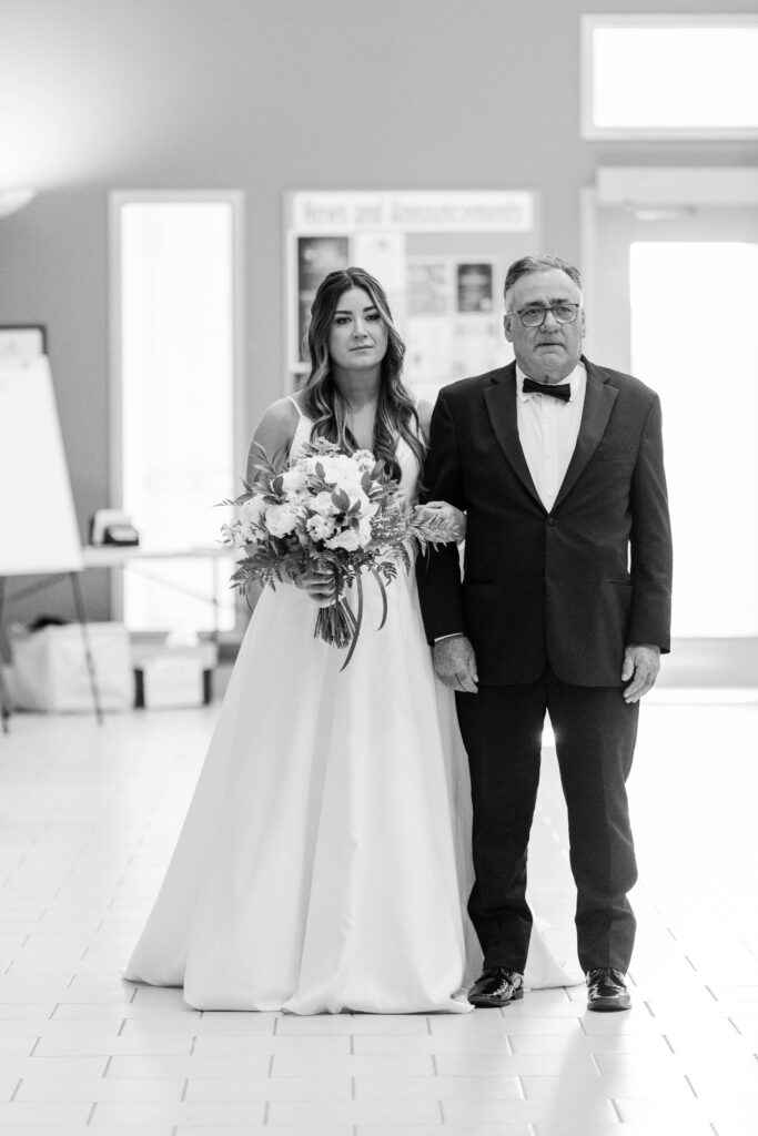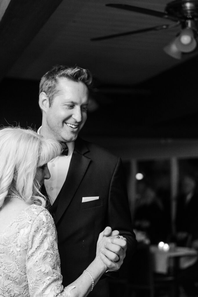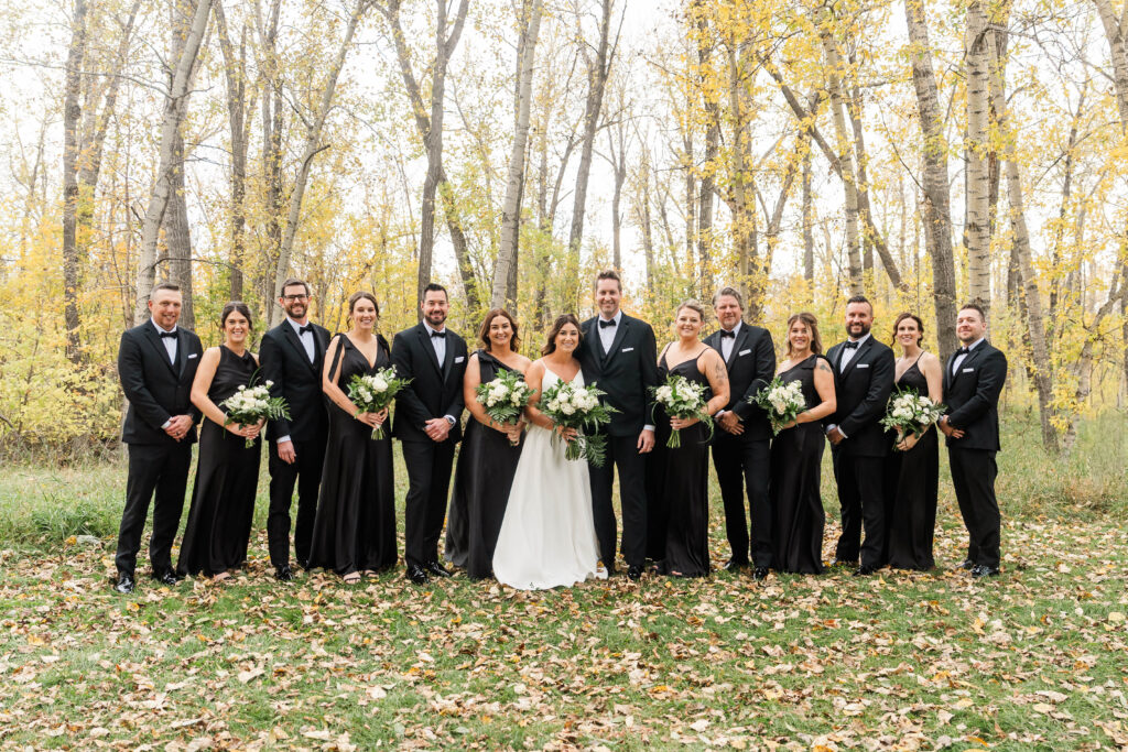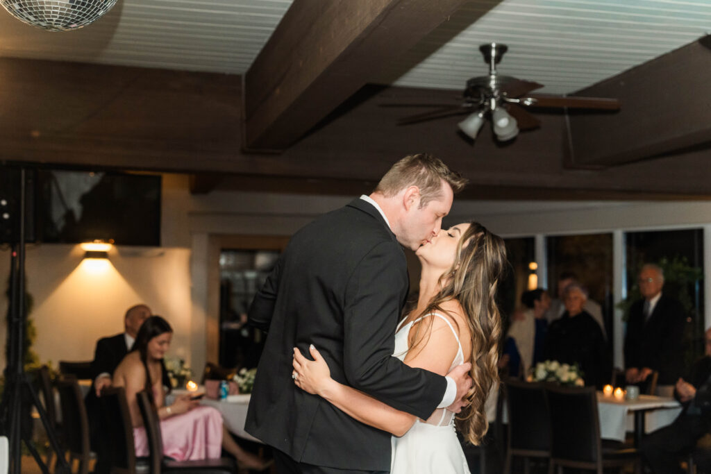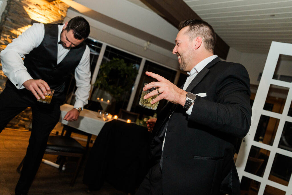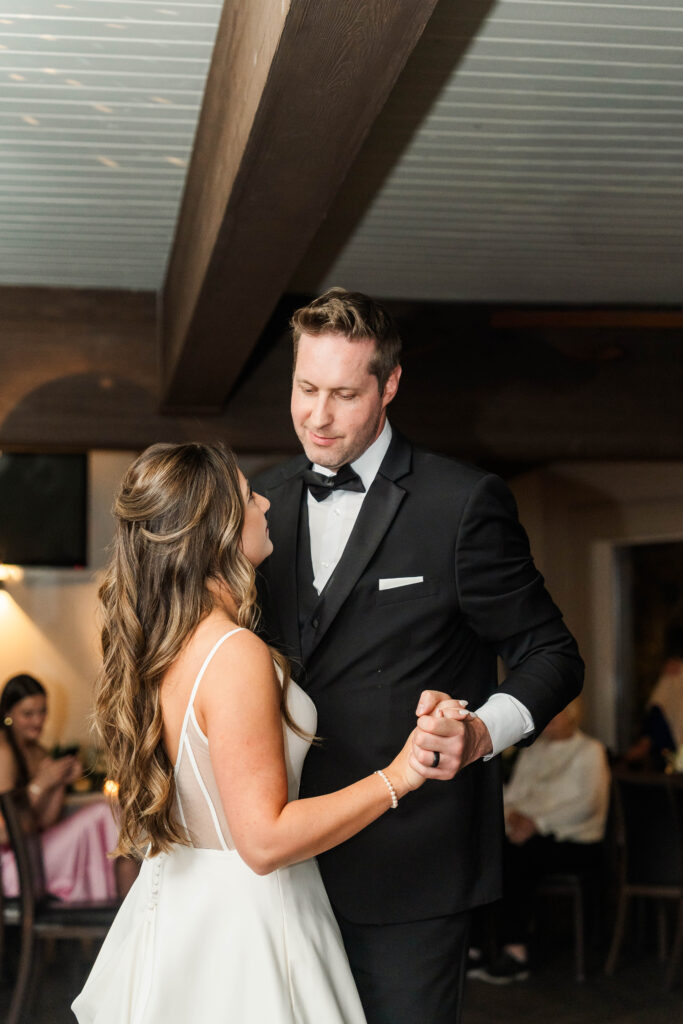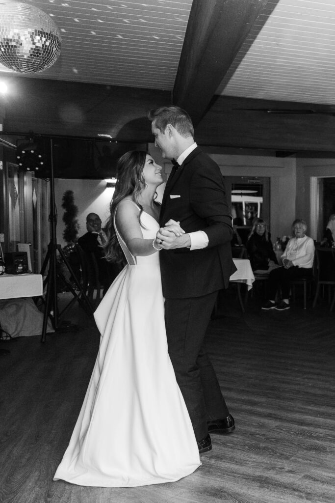 Their wedding day felt like a fairytale from beginning to end. It was the last day of fall — golden leaves still clinging to the trees, and by evening, a gentle snowfall arrived, wrapping everything in winter beauty. They exchanged vows at St. James Parish before heading to Crystal Ridge Golf Club for an unforgettable celebration filled with love, laughter, and the most elegant black-and-white details.