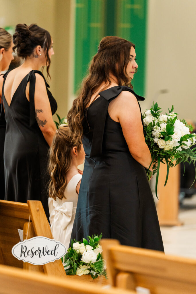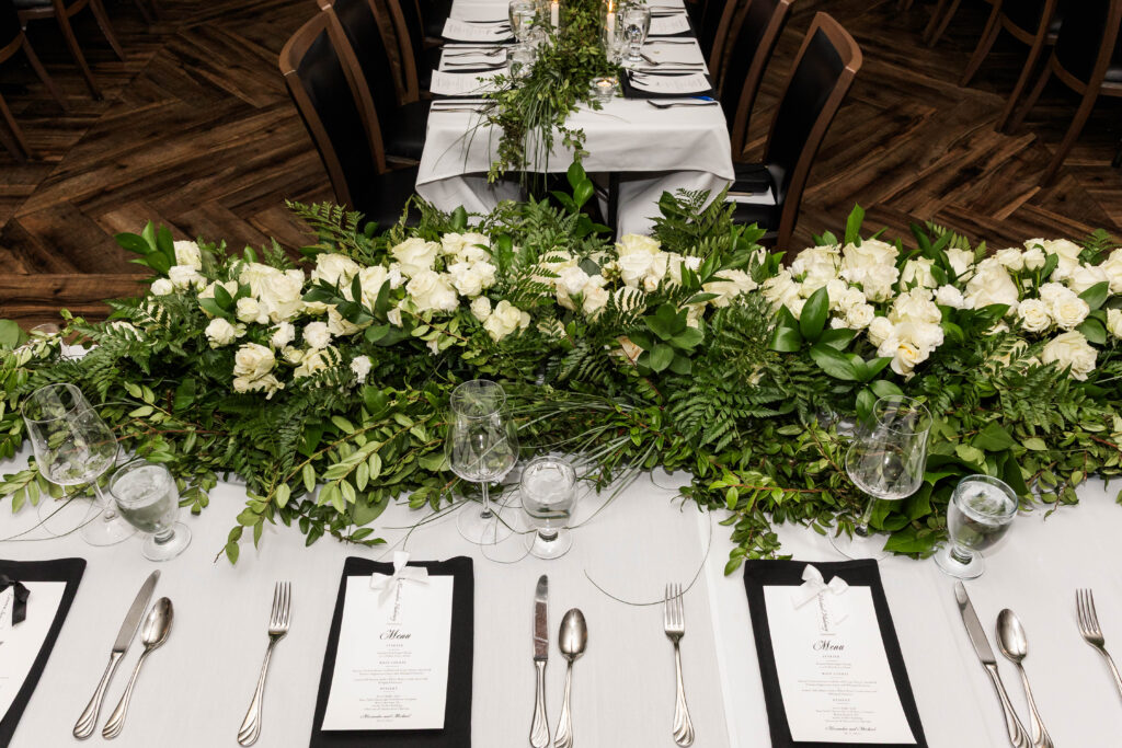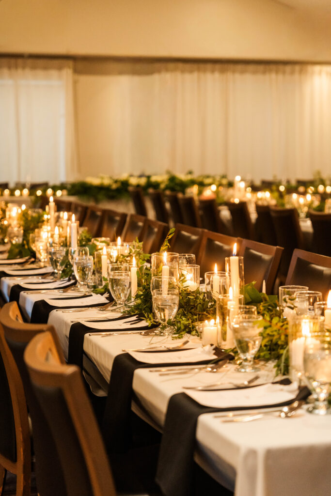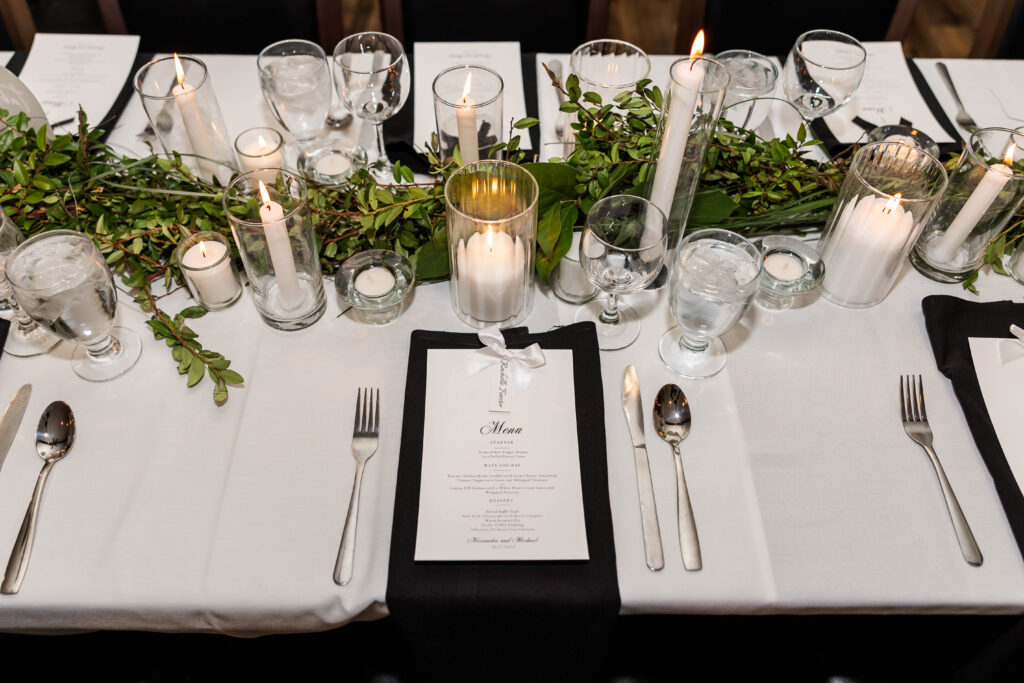 The reception was a dream: glowing candles, timeless florals, and a perfectly classic atmosphere that reflected Alex and Mike’s style. The wedding party looked amazing in all black, letting Alex’s gown truly shine as she and Mike soaked in every moment together.
